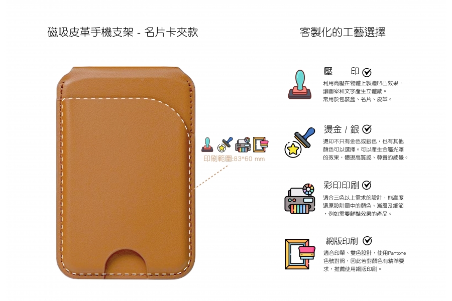 ‧ 適合用在皮革材質、紙盒包裝或名片設計。