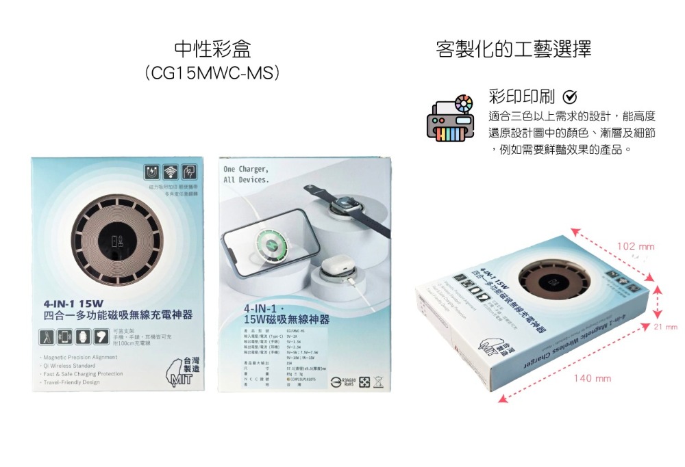 ‧ 適合三色以上的設計,但無法印製金色、銀色等金屬色系。