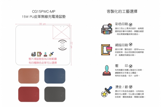 CG15PWC-MP - 15W PU皮革無線充電滑鼠墊