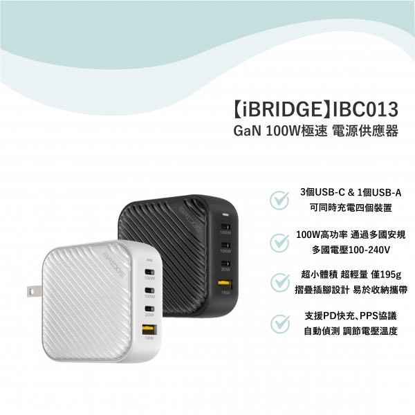 【iBRIDGE】IBC013 - 100W氮化鎵(GaN)極速電源供應器