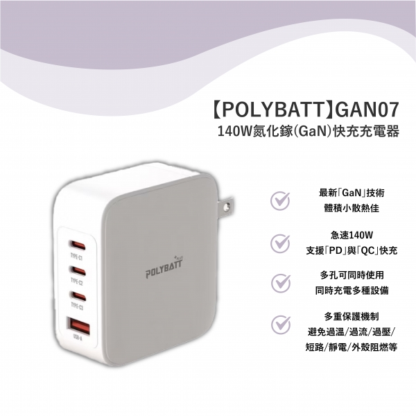 【POLYBATT】GAN07 - 140W氮化鎵(GaN)快充充電器