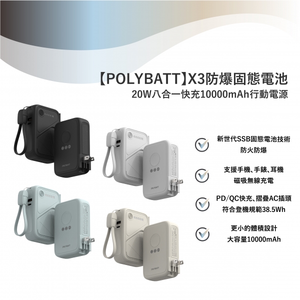 【POLYBATT】X3 - 防爆固態電池 20W八合一快充10000mAh行動...