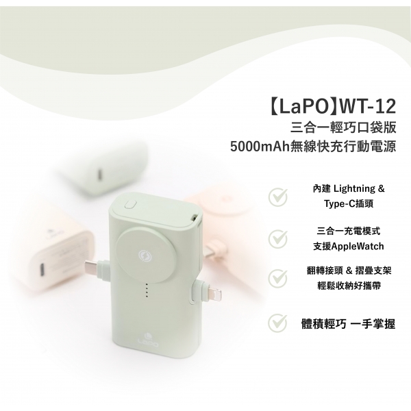 【LaPO】WT-12 - 三合一輕巧口袋版3000mAh無線快充行動電源