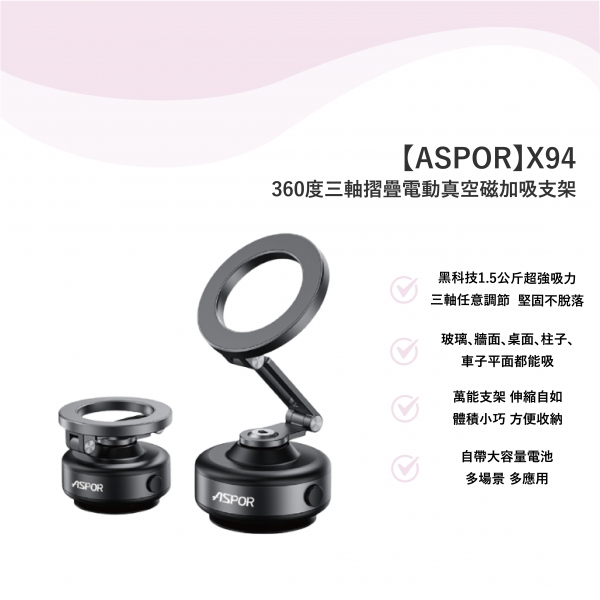 【ASPOR】X94 - 360度三軸摺疊電動真空磁加吸支架