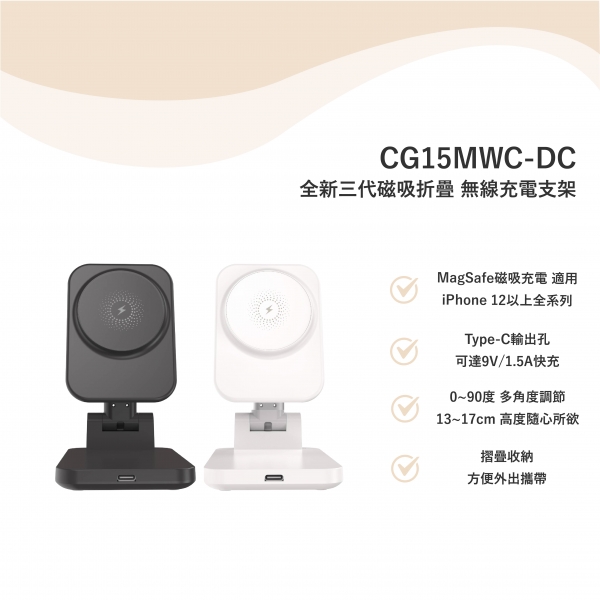 CG15MWC-DC - 全新三代磁吸折疊 無線充電支架