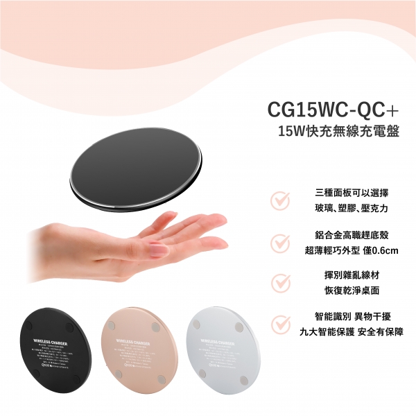 CG15WC-QC+ / CG15WC-QC - 15W快充無線充電盤