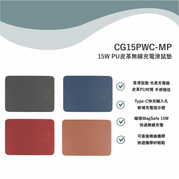 CG15PWC-MP - 15W PU皮革無線充電滑鼠墊