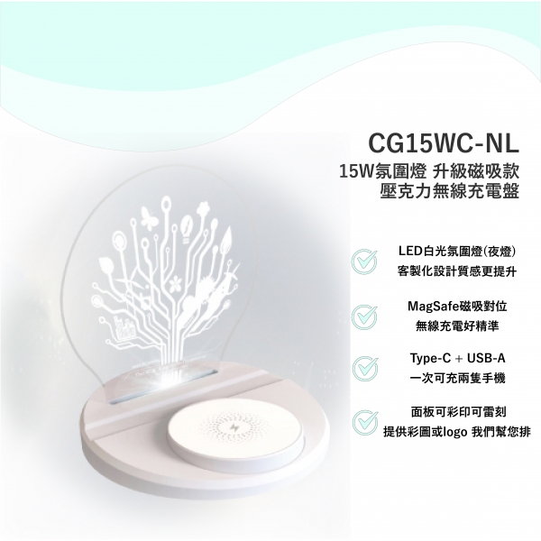 CG15WC-NL - 15W氛圍燈 升級磁吸款 壓克力無線充電盤