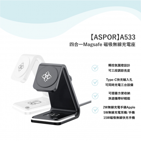 【ASPOR】A533 - 四合一Magsafe 磁吸無線充電座