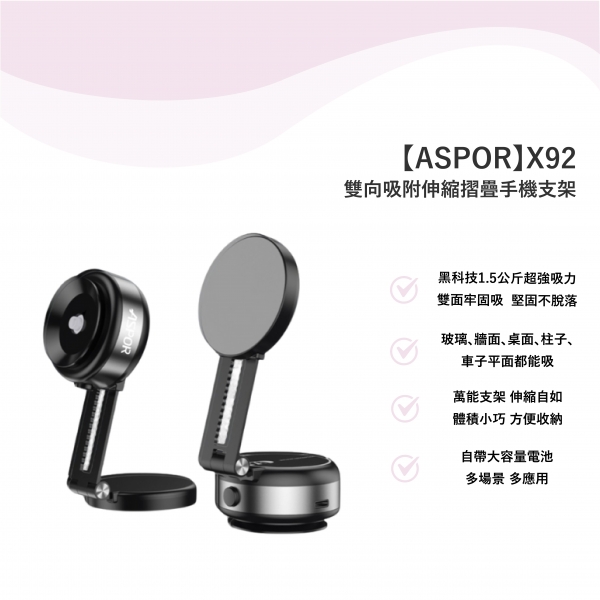 【ASPOR】X92 - 雙向吸附伸縮摺疊手機支架