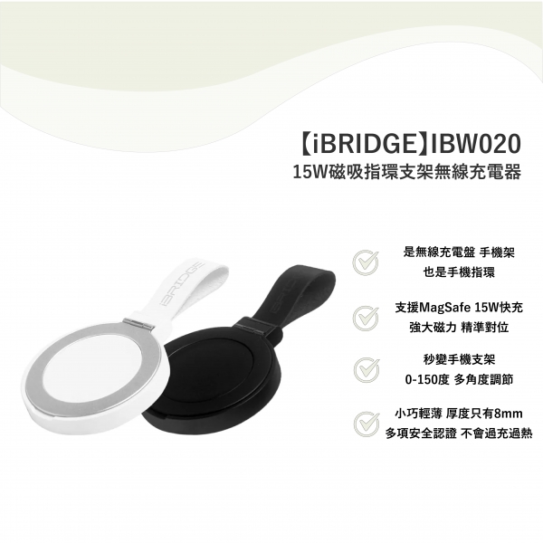 【iBRIDGE】IBW020 - 15W磁吸指環支架無線充電器