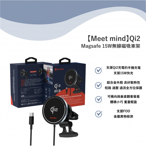【Meet mind】Qi2 Magsafe 15W無線磁吸車架