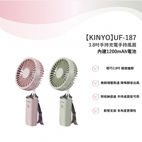 【KINYO】UF-187 - 3.8吋手持充電風扇