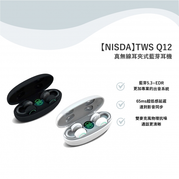 【NISDA】TWS Q12 真無線耳夾式藍芽耳機