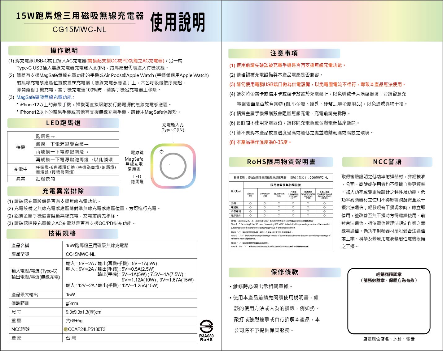 CG15MWC-NL - 15W LED夜燈跑馬燈三用無線充電盤 • 七彩LED 時尚美學新品 • 智慧充電 不傷機身 • 耳機手錶也能充 另有客製化印刷 點此可看更多資訊!歡迎詢問! 我們提供專業網頁設計服務 秉持著以最專業的態度替客戶進行網站建置、程式撰寫以及網路行銷等服務。 更多其他產品 客製化印刷