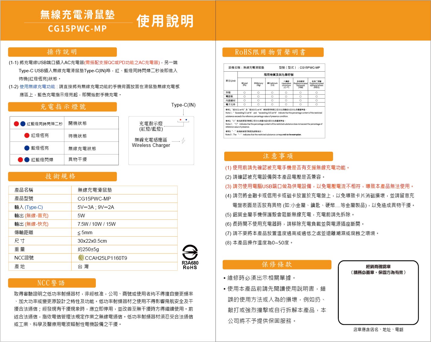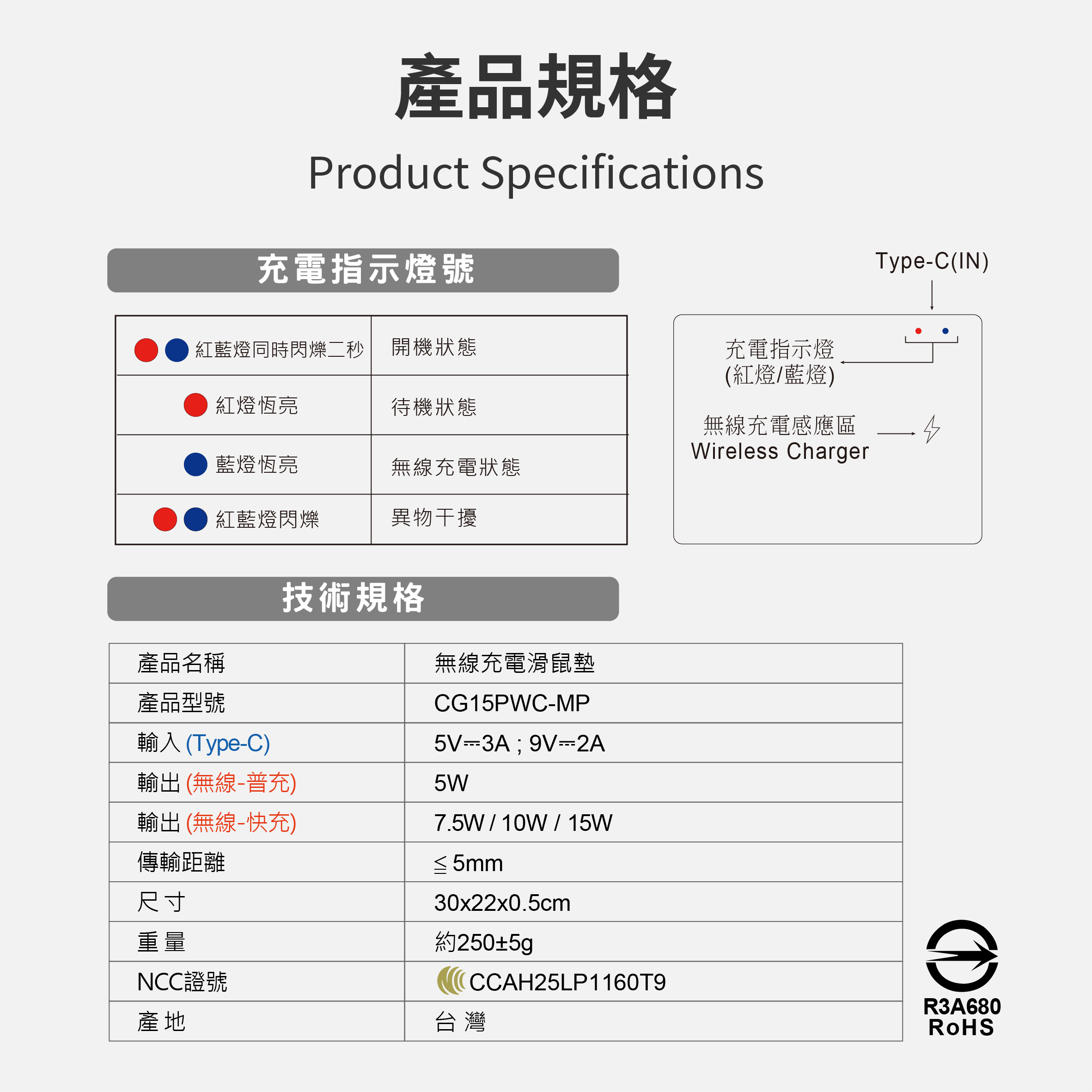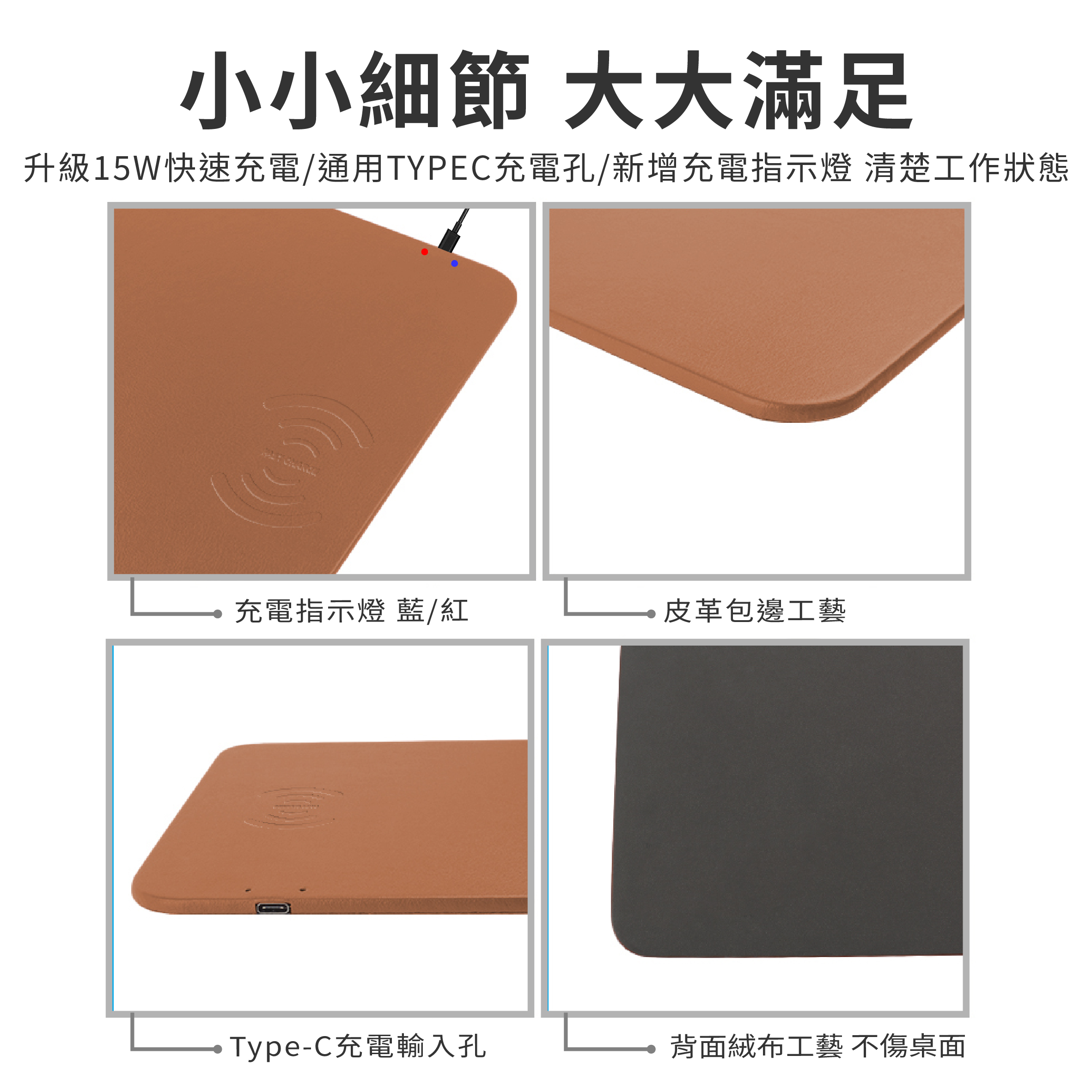 CG15PWC-MP - 15W PU皮革無線充電滑鼠墊 • 15W快速無線充電 • TYPEC輸入孔 • 皮革PU材質 手感極佳 • 既是無線充電 也是滑鼠墊 另有客製化印刷服務←點此可看更多資訊!歡迎詢問! 更多其他產品 客製化印刷