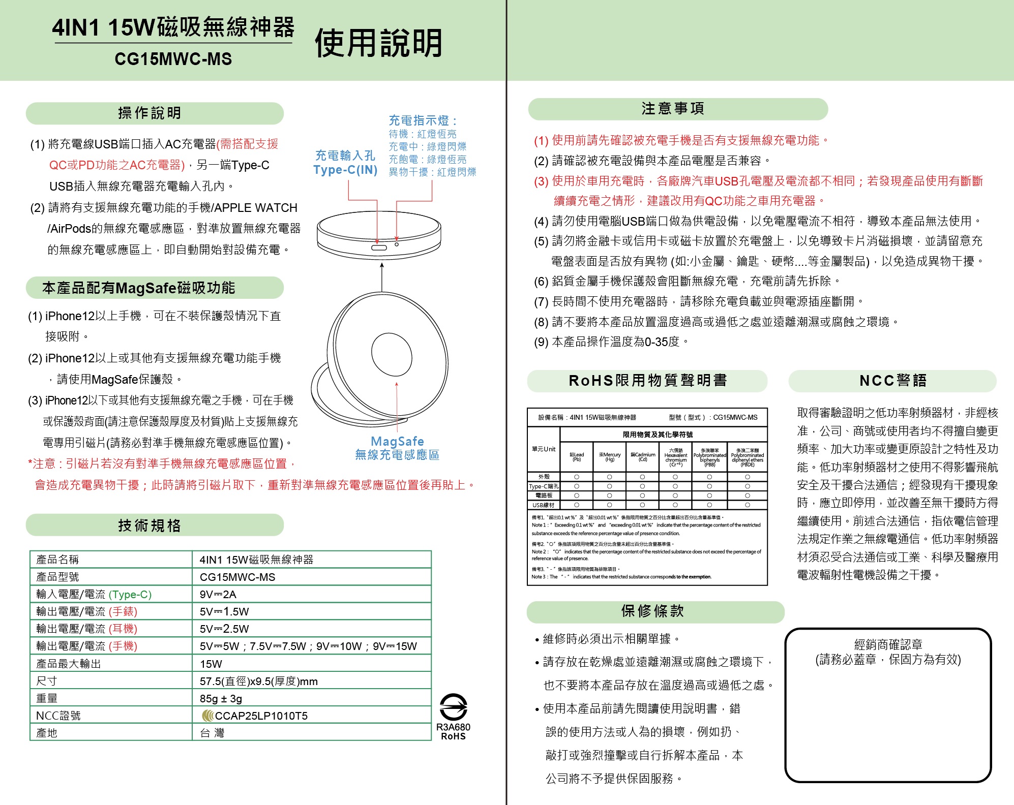 CG15MWC-MS - 四合一無線充電神器 (手機/手錶/耳機) • 一台三用 • 輕便攜帶• 磁力加倍 • 緊緊吸附• 多角度任意翻轉 另有客製化印刷服務←點此可看更多資訊!歡迎詢問! Read More 更多其他產品 客製化案例