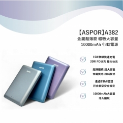 【ASPOR】A382 - 金屬超薄款 磁吸10000mAh行動電源 • 超薄體積、超大容量 • 金屬質感、科技感十足 • 電量充盈、快速充電 另有客製化印刷服務 點此可看更多資訊!歡迎詢問! Read More 更多其他產品 客製化案例
