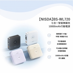 【NISDA】BS-WL720 - 七合一智能無線充10000mAh行動電源 (手錶/手機/耳機) • 磁吸隨行 • 可折疊插頭 • 支架輕鬆固定 另有客製化印刷服務 點此可看更多資訊! Read More 更多其他產品 客製化案例