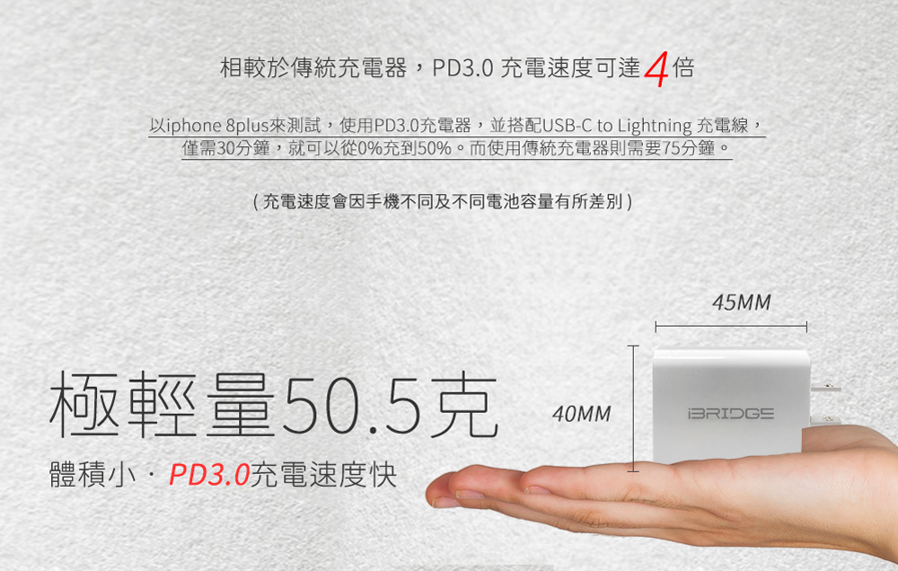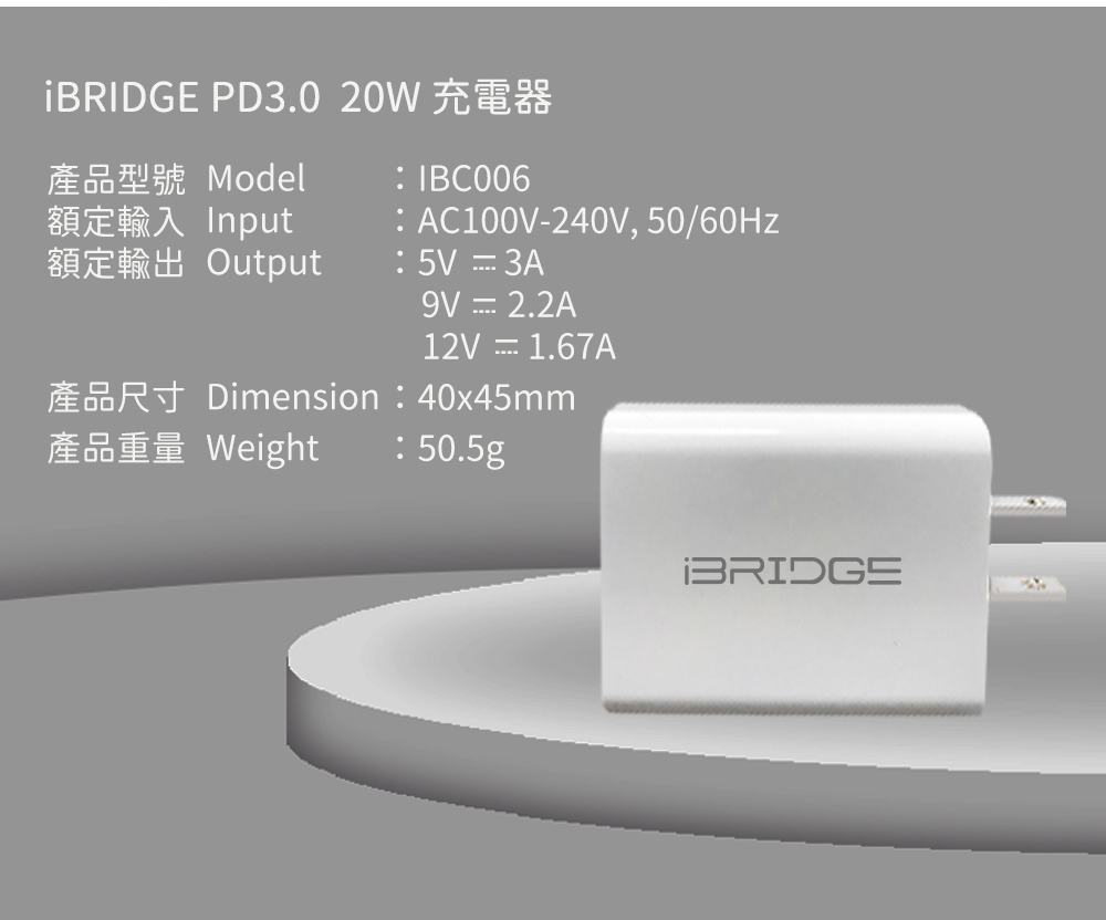 【iBRIDGE】IBC006 - 20W(PD3.0)急速快充充電器