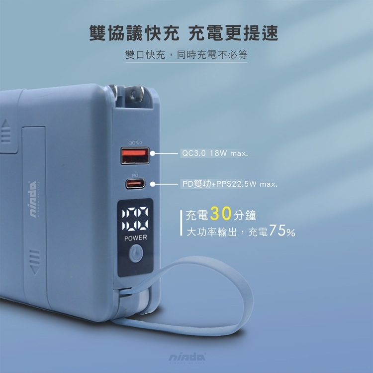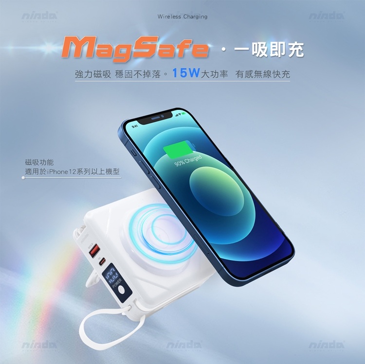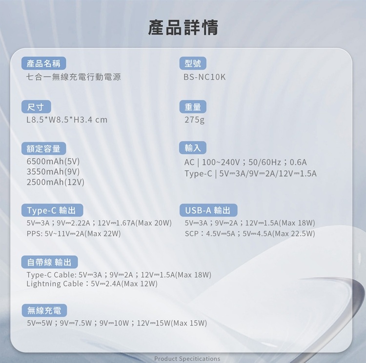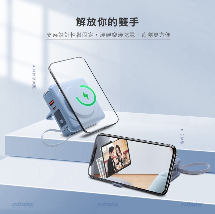 【NISDA】BS-NC10K - 七合一多功能 自帶線/無線 行動電源 • 超級萬能七合一 • Megasafe一吸即充 • 五台設備同時充 • 摺疊插頭 支架支撐 另有客製化印刷服務 點此可看更多資訊! Read More 更多其他產品 客製化案例
