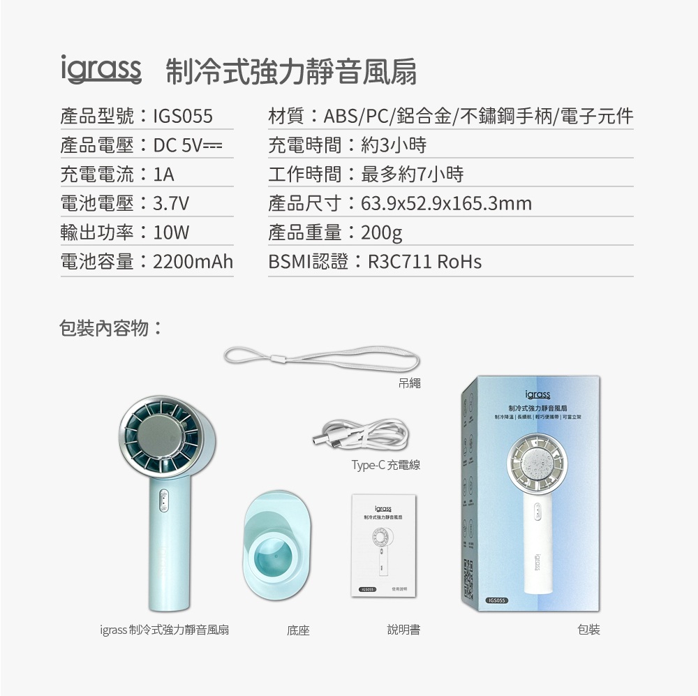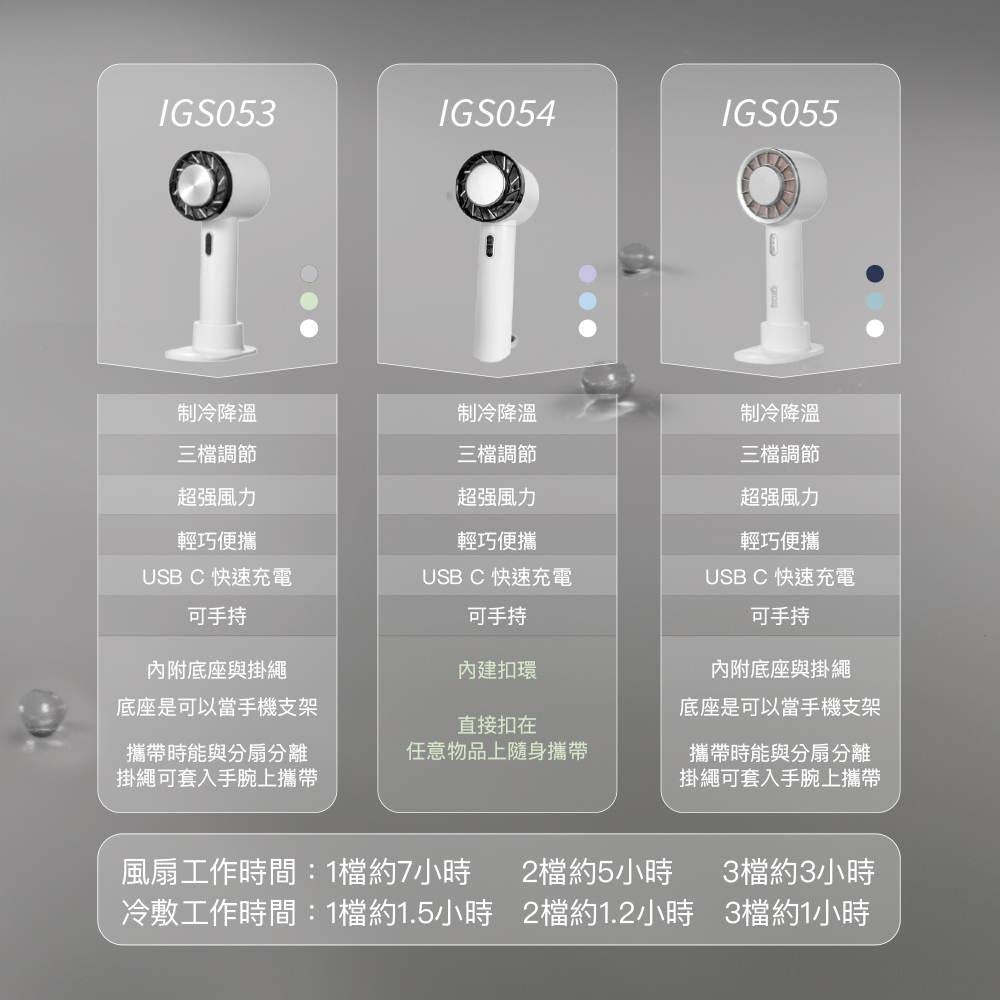 【igrass】IGS055 - 製冷式強力靜音風扇 ‧ 吊掛手持皆可用 ‧ 急速製冷 立刻降溫 ‧ 風力集中 三段換檔 另有客製化印刷服務←點此可看更多資訊!歡迎詢問! Read More 更多其他產品 客製化案例