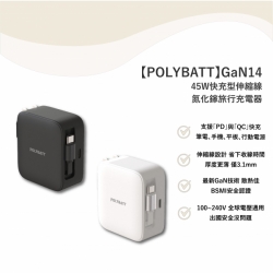 【POLYBATT】GaN14 - 45W快充型伸縮線 氮化鎵旅行充電器 • 最新「GaN」技術,體積小散熱佳 • 支援「PD」與「QC」快充,解決各設備快充需求 • 伸縮線設計,省下90%收線時間 另有客製化印刷服務←點此可看更多資訊! 我們提供專業網頁設計服務 秉持著以最專業的態度替客戶進行網站建置、程式撰寫以及網路行銷等服務。 我們提供專業網頁設計服務 秉持著以最專業的態度替客戶進行網站建置、程式撰寫以及網路行銷等服務。 更多其他產品 客製化案例