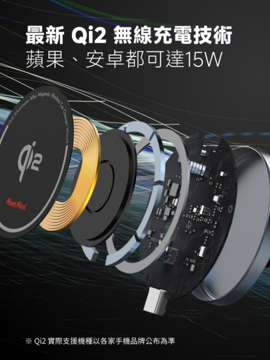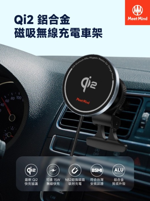 【Meet mind】Qi2 - Magsafe 15W無線磁吸車架