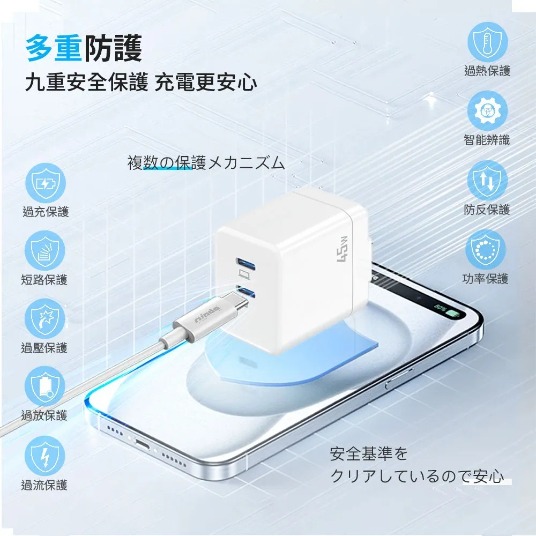 ‧ 45W大功率 雙Type-C輸出PPS快充協議(PD3.0快充)