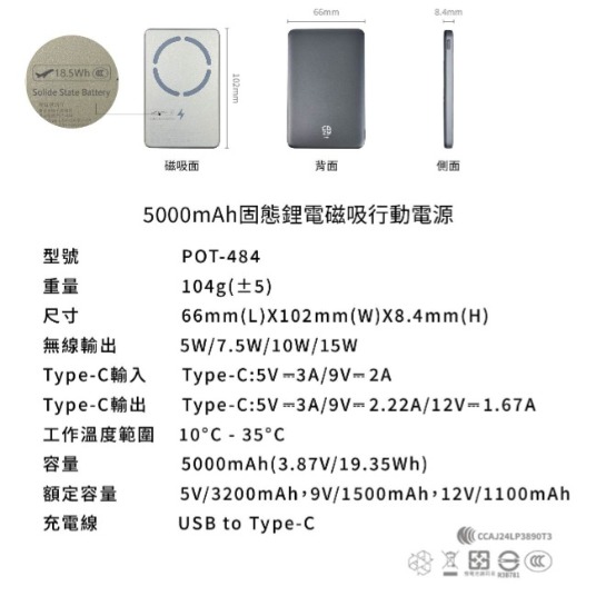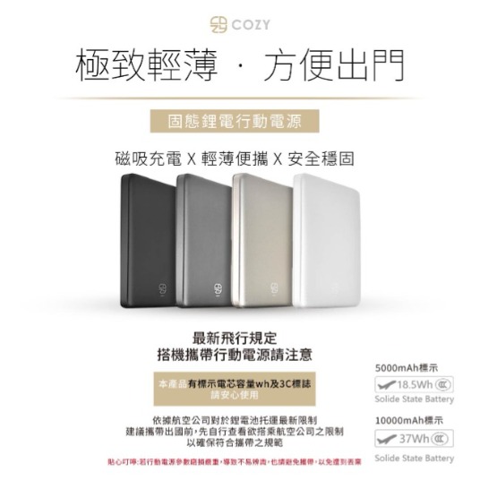 【COZY】POT484 - 固態鋰電超薄磁吸 5000mAh行動電源