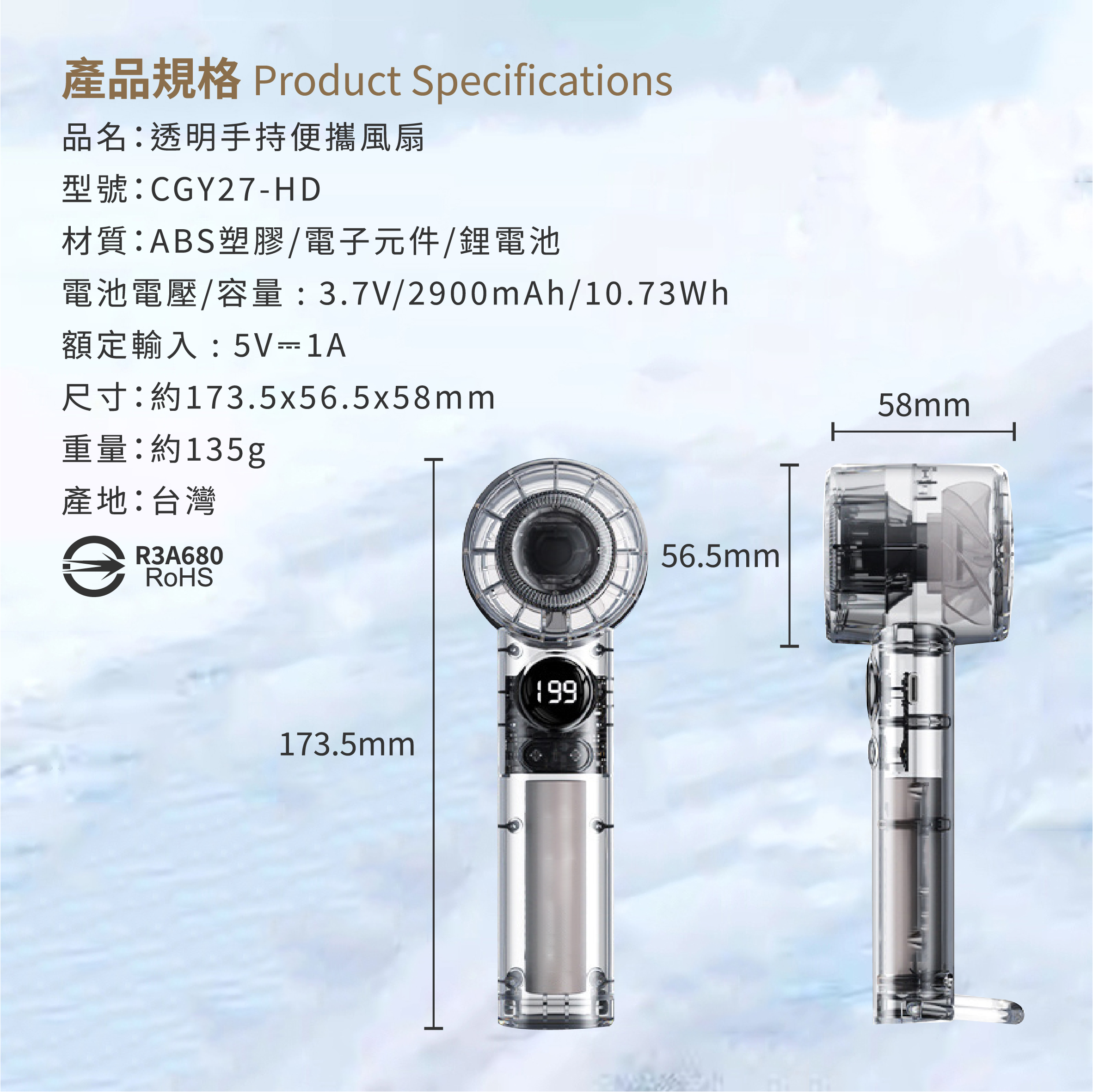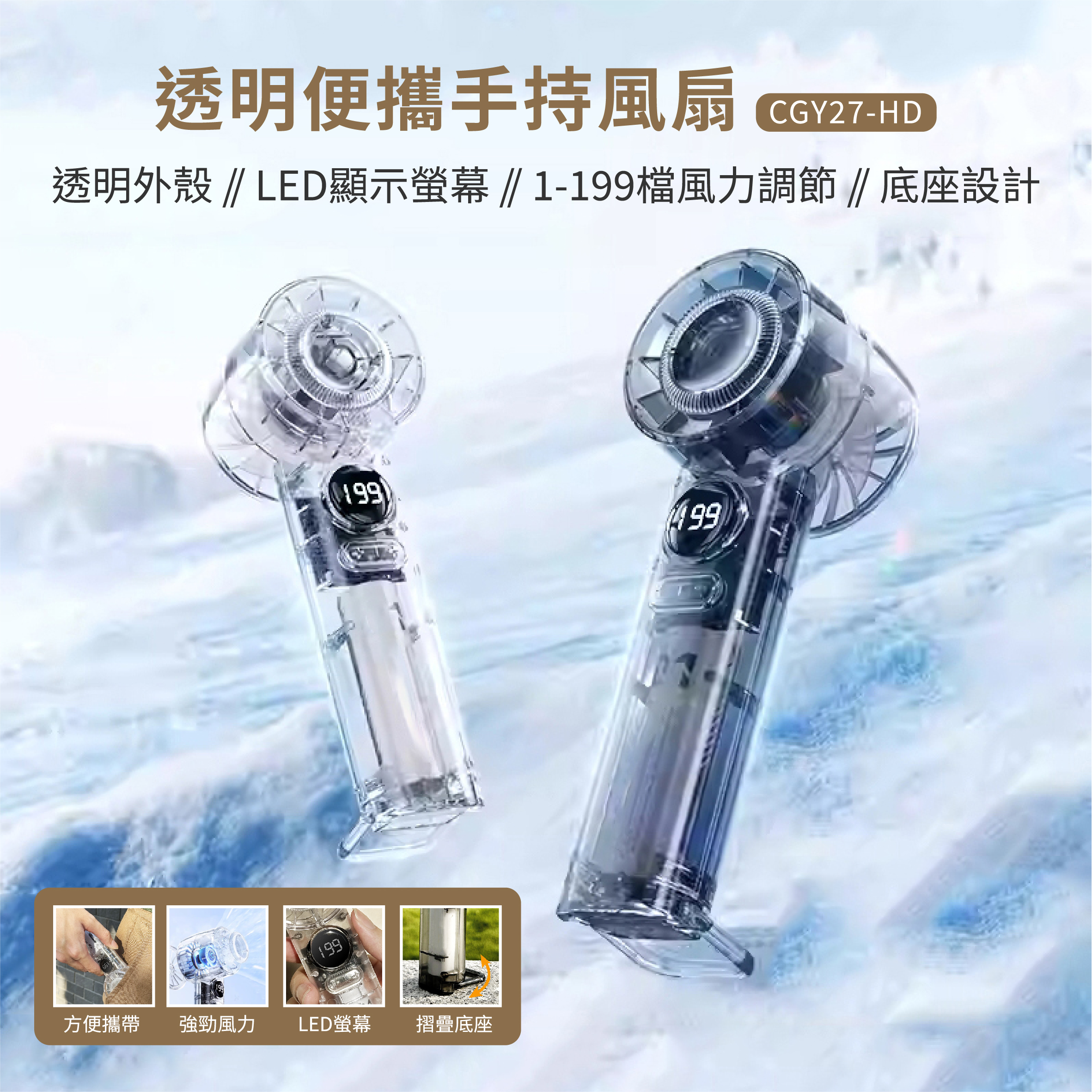 - 透明手持便攜風扇 -