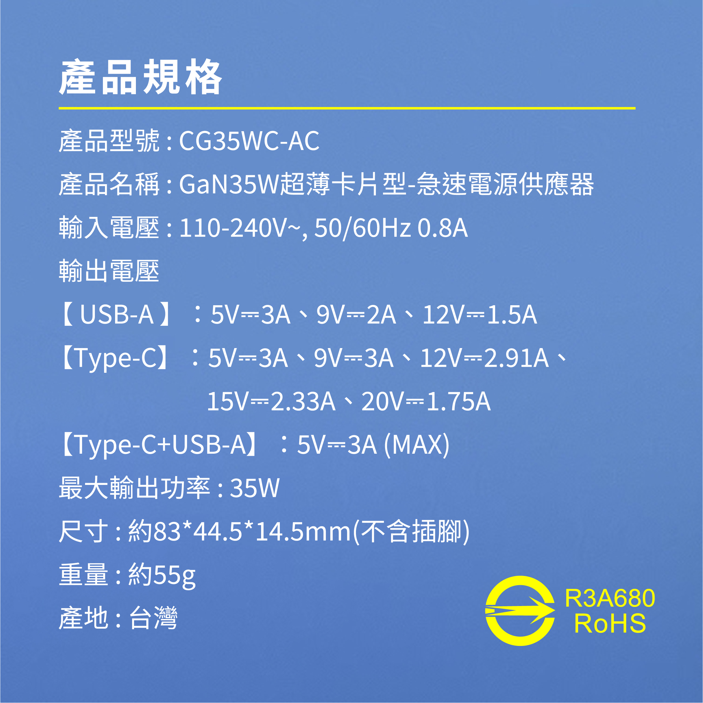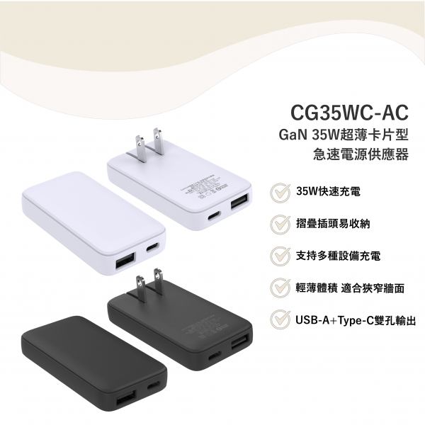 CG35WC-AC 【GaN 35W超薄卡片型急速電源供應器】