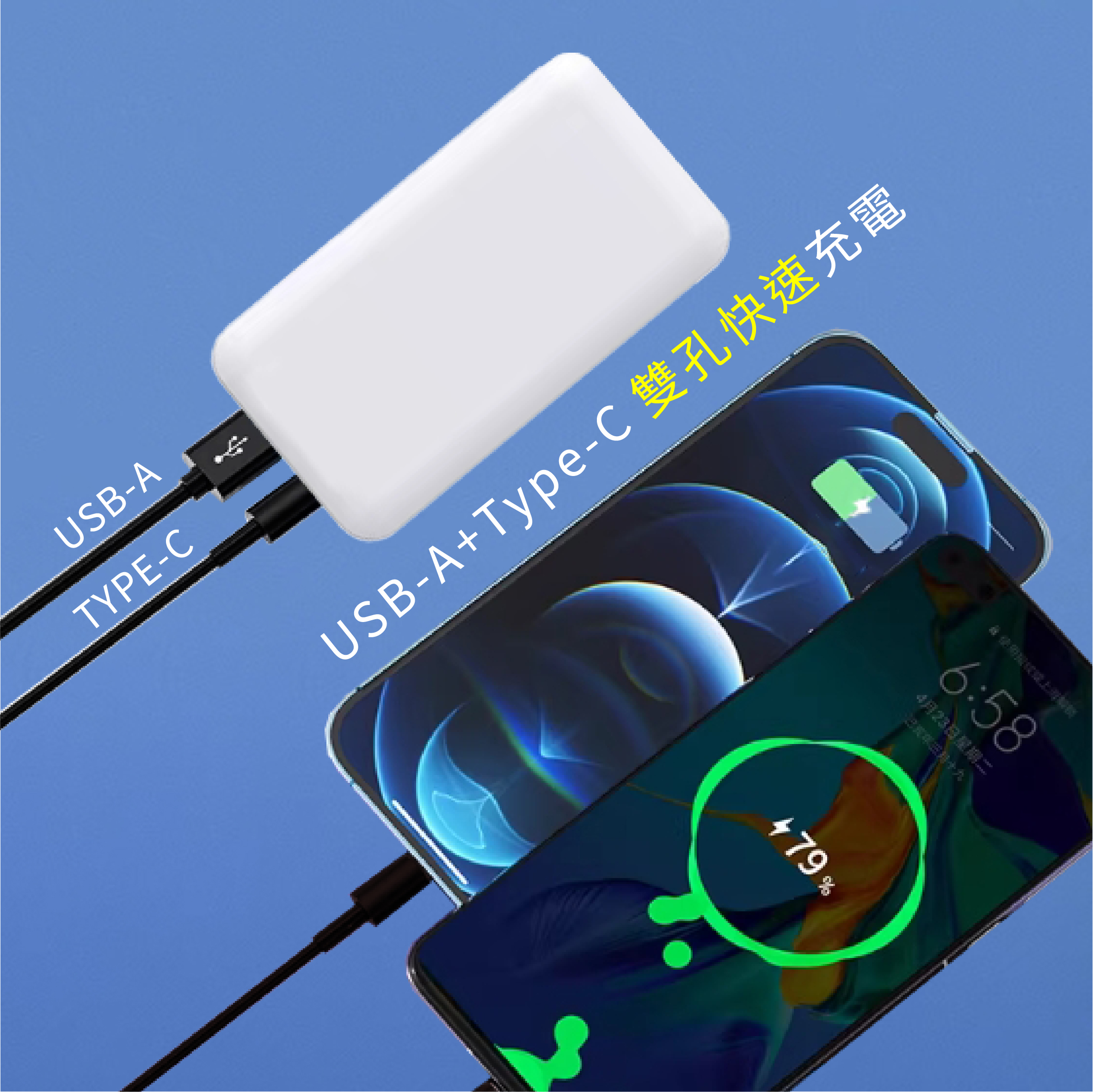 ‧ USB-A+Type-C雙孔輸出