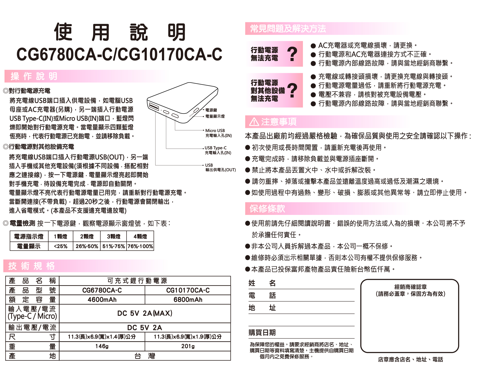 CG6780-10170CA-CA - 雙充卡片行動電源