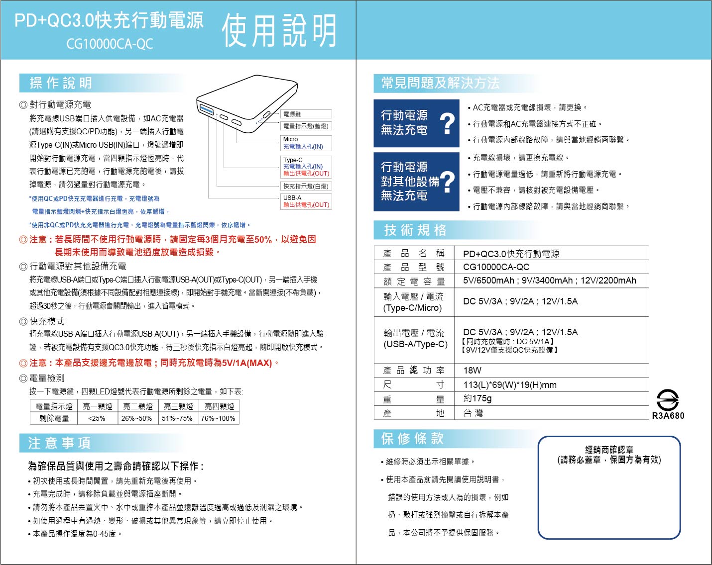 CG10000CA-QC - PD+QC快充 10000mAh行動電源 • 大方簡約 一手掌握剛剛好 • PD雙孔輸出 同時輸出兩台裝置 • 急速充電 另有客製化印刷服務 點此可看更多資訊! 更多其他產品 客製化印刷