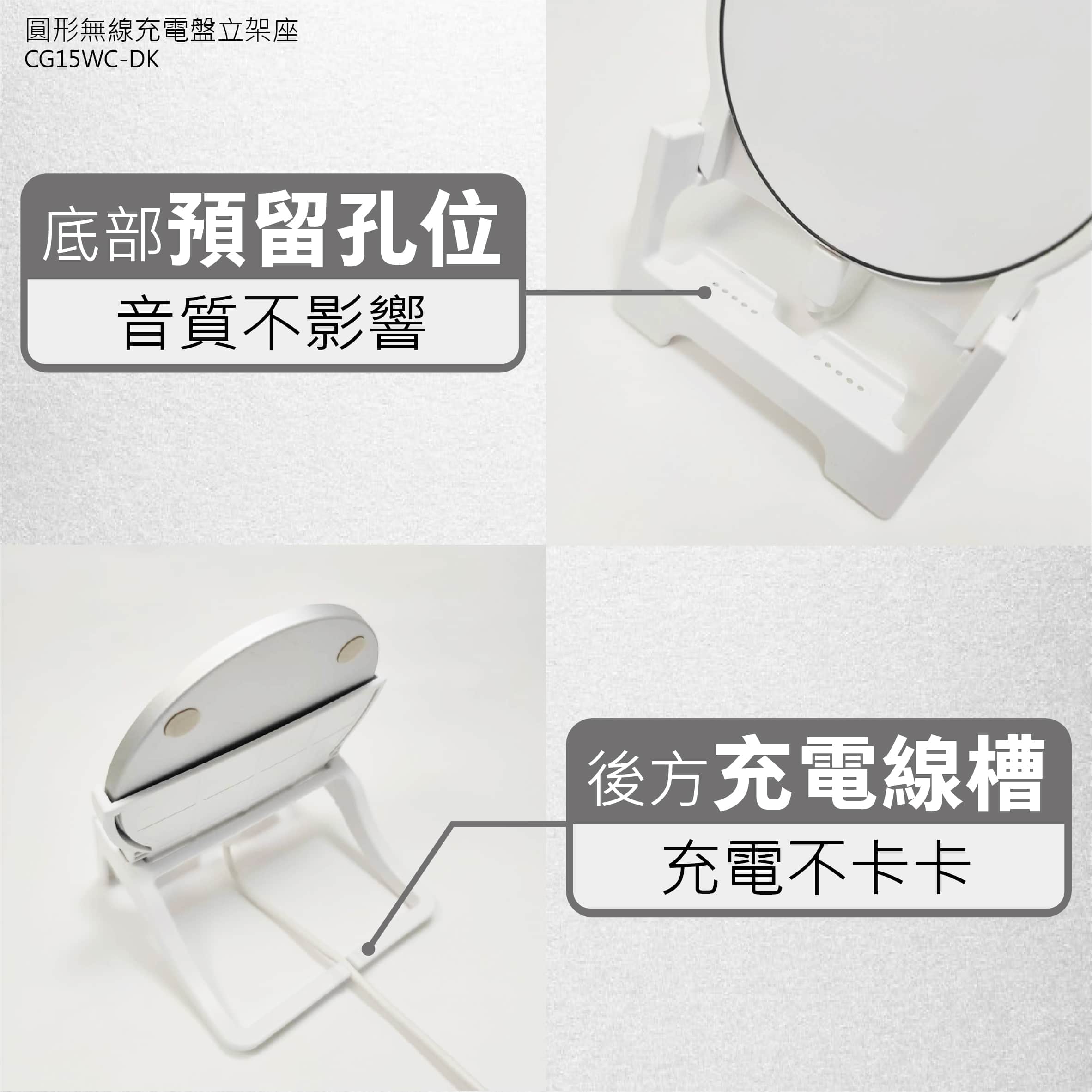 CG15WC-DK - 立架座for圓盤無線充電器 ‧ 專為圓盤無線充電設計 ‧ 底部預留孔位 不影響音質 ‧ 後方充電線槽 不卡線 另有客製化印刷服務 點此可看更多資訊!歡迎詢問! 更多其他產品 客製化印刷