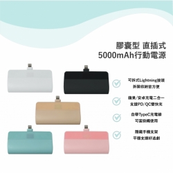 PB5000 - 自帶線膠囊直插式5000mAh行動電源